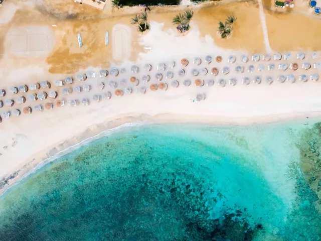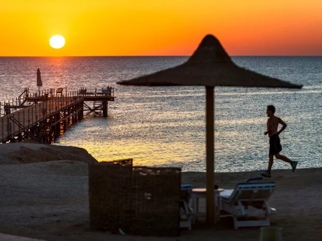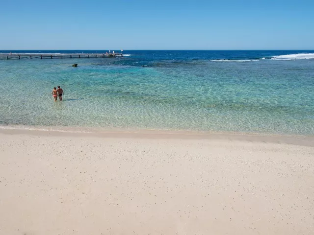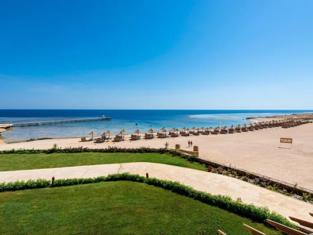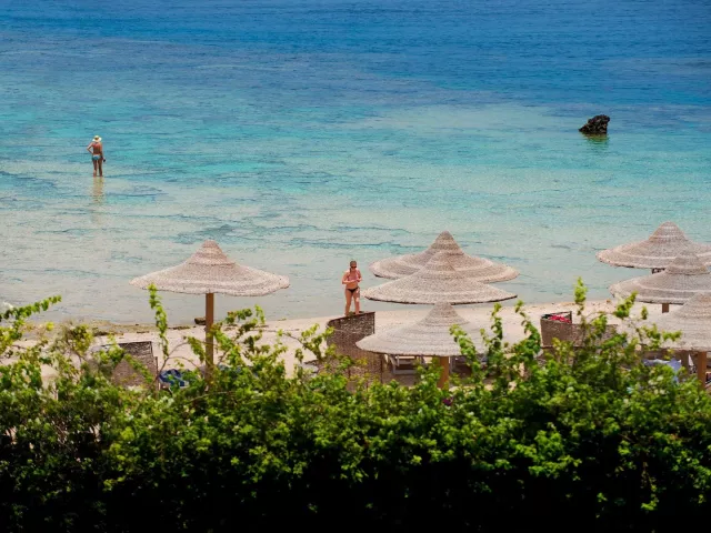 Piesočná pláž sa nachádza priamo pri hoteli a ponúka pomalý vstup do mora. Môžete si užívať šnorchlovanie a potápanie s koralovým podložím. Na pláži sú k dispozícii lehátka, slnečníky a osušky zdarma, pričom je tu aj oddelená časť len pre dospelých.