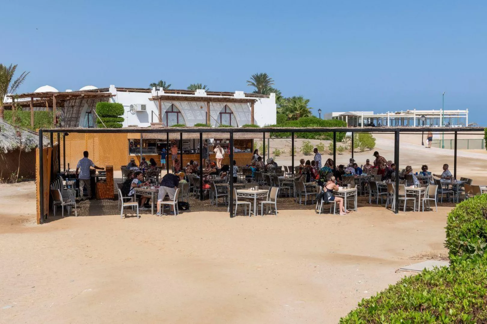 All inclusive Plná penzia formou medzinárodného samoobslužného bufetu Nápoje počas jedál balená prírodná minerálna voda, nealkoholické nápoje, miestne pivo a víno podávané po pohároch v hlavnej reštaurácii Nápoje v baroch nealkoholické nápoje, pivo, miestne alkoholické nápoje, voda, americká káva a čaj (okrem Shisha baru). Víno je k dispozícii za poplatok. Neskoré raňajky (sladké pečivo, káva, čaj a mlieko) v Pool Bare a Sandy Bare denne od 1000 do 1130 Obed v Sandy Bare od 1130 do 1630 pizza, hranolky, hamburgery, hot dogy, sendviče, cestoviny, šaláty, sezónne ovocie Možnosť jednej večere týždenne v pizzerii (à la carte reštaurácia) nutná rezervácia minimálne 24 hodín vopred Možnosť jednej večere týždenne v reštaurácii La Vela (talianska à la carte reštaurácia) nutná rezervácia minimálne 24 hodín vopred Denne dopĺňaná minerálna voda na izbe Bezplatná Wi-Fi zóna s obmedzenou rýchlosťou (recepcia, lobby bar a Garden bar)