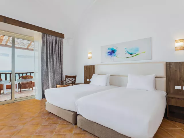 Dvojlôžková izba, Výhľad do záhrady individuálne ovládaná klimatizácia telefón TV so satelitným príjmom set na prípravu čaju a kávy Wi-Fi (zadarmo) minibar (zadarmo denne doplňovaná voda) trezor (zadarmo) kúpeľňa/WC (sušič vlasov) balkón alebo terasa cca 35 m² Ostatné typy izieb (pokiaľ nie je uvedené inak, majú izby vyššie uvedené vybavenie) Dvojlôžková izba, Výhľad na bazén cca 35 m² Jednolôžková izba , výhľad do záhrady Dvojlôžková izba, Výhľad na more cca 35 m², výhľad na more Dvojlôžková izba, Superior, Výhľad do záhrady: priestrannejšie., cca 42 - 45 m² Dvoulôžková izba, Superior, Výhľad na bazén: priestranejšie, cca 42 - 45 m², výhľad na bazén Dvoulôžková izba, Superior, Výhľad na more: priestranejšie, cca 42 - 45 m², výhľad na more Rodinná izba, Deluxe, Výhľad do zahrady: 2x spálňa, cca 70 m² Rodinná izba, Deluxe, Výhľad na bazén : 2x spálňa, cca 70 m², výhľad na bazén