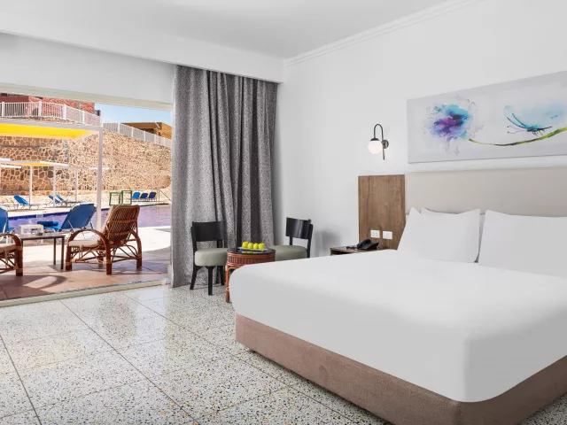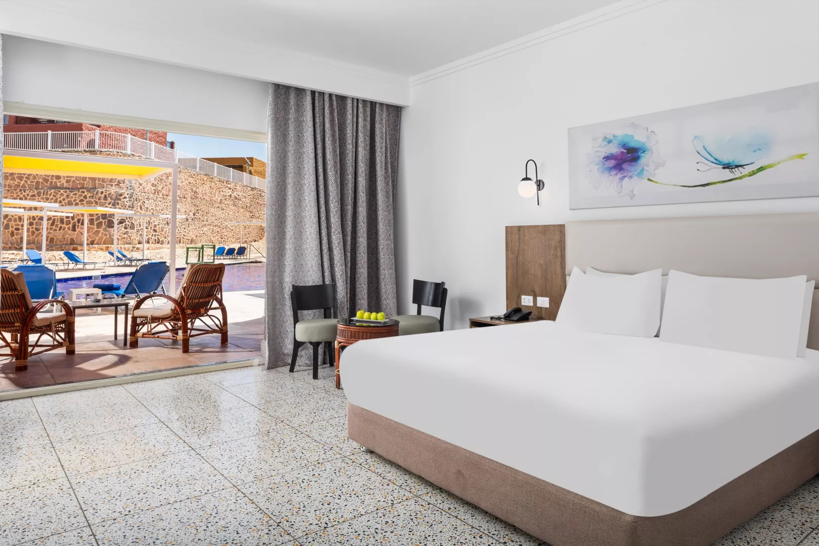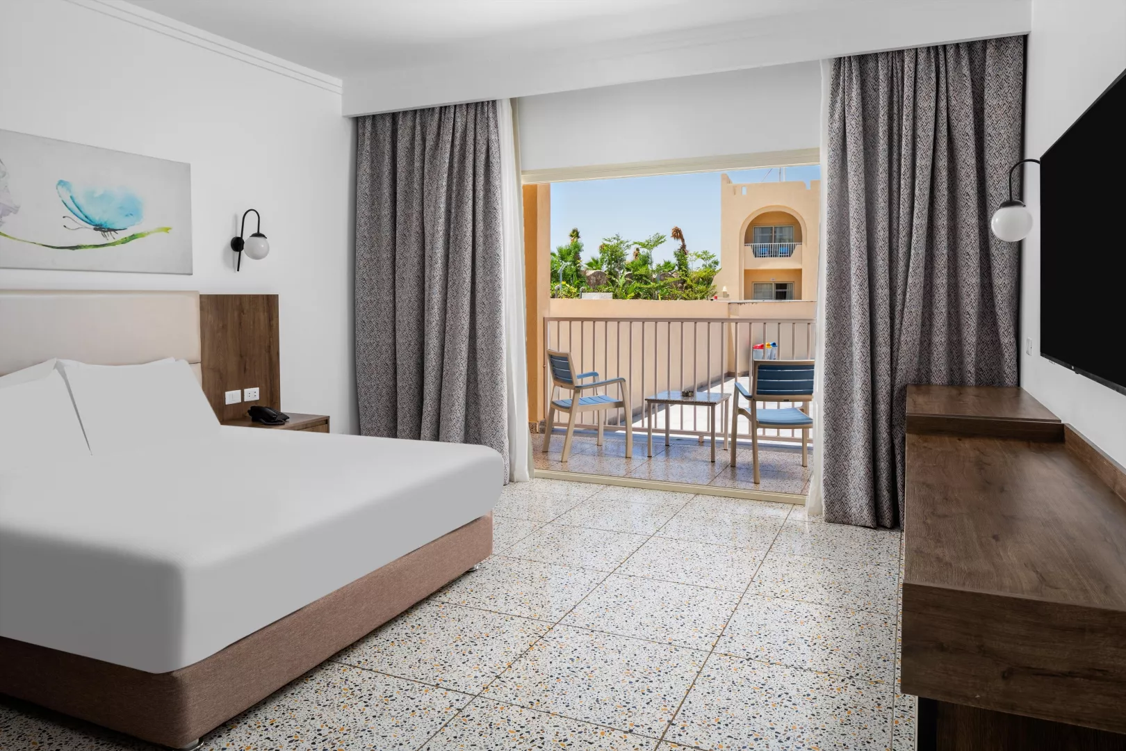 Dvojlôžkové izby sú vybavené individuálne ovládanou klimatizáciou, televízorom so satelitným príjmom, minibarom (s vodou zadarmo), trezorom a Wi-Fi pripojením zdarma. Balkón alebo terasa je súčasťou izby, pričom časti izieb majú výhľad na bazén či more. K dispozícii sú aj rodinné suity zabezpečujúce dve spálne.