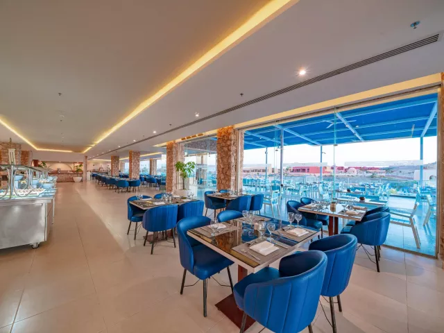 Hotel po kompletnej rekonštrukcii ponúka moderné zariadenia, medzi ktoré patrí vstupná hala s recepciou, hlavná reštaurácia, niekoľko tematických a á la carte reštaurácií, aspoň 8 barov, ako aj bary pri bazéne a na pláži. Súčasťou hotela sú aj 4 bazény (vrátane dvoch vyhrievaných v zimnom období), detské bazény, miniklub, detské ihrisko a aquapark s množstvom šmykľaviek. Vo wellness modernom SPA centre si môžete dopriať relaxačné procedúry.