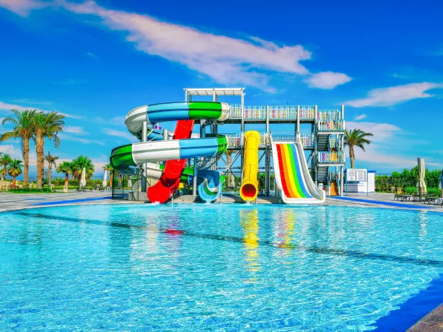 Hotel disponuje vstupnou halou s recepciou, lobby, reštauráciou, á la carte reštauráciou (talianska), barom, konferenčnou sálou, diskotékou a amfiteátrom. Vonku nájdete krásnu záhradu, 6 bazénov (dva v zime s možnosťou vyhrievania) a terasu so slnečníkmi a lehátkami, ktoré sú k dispozícii zdarma. Rezort má k dispozícii aquapark so šmykľavkami vhodnými pre deti i dospelých.