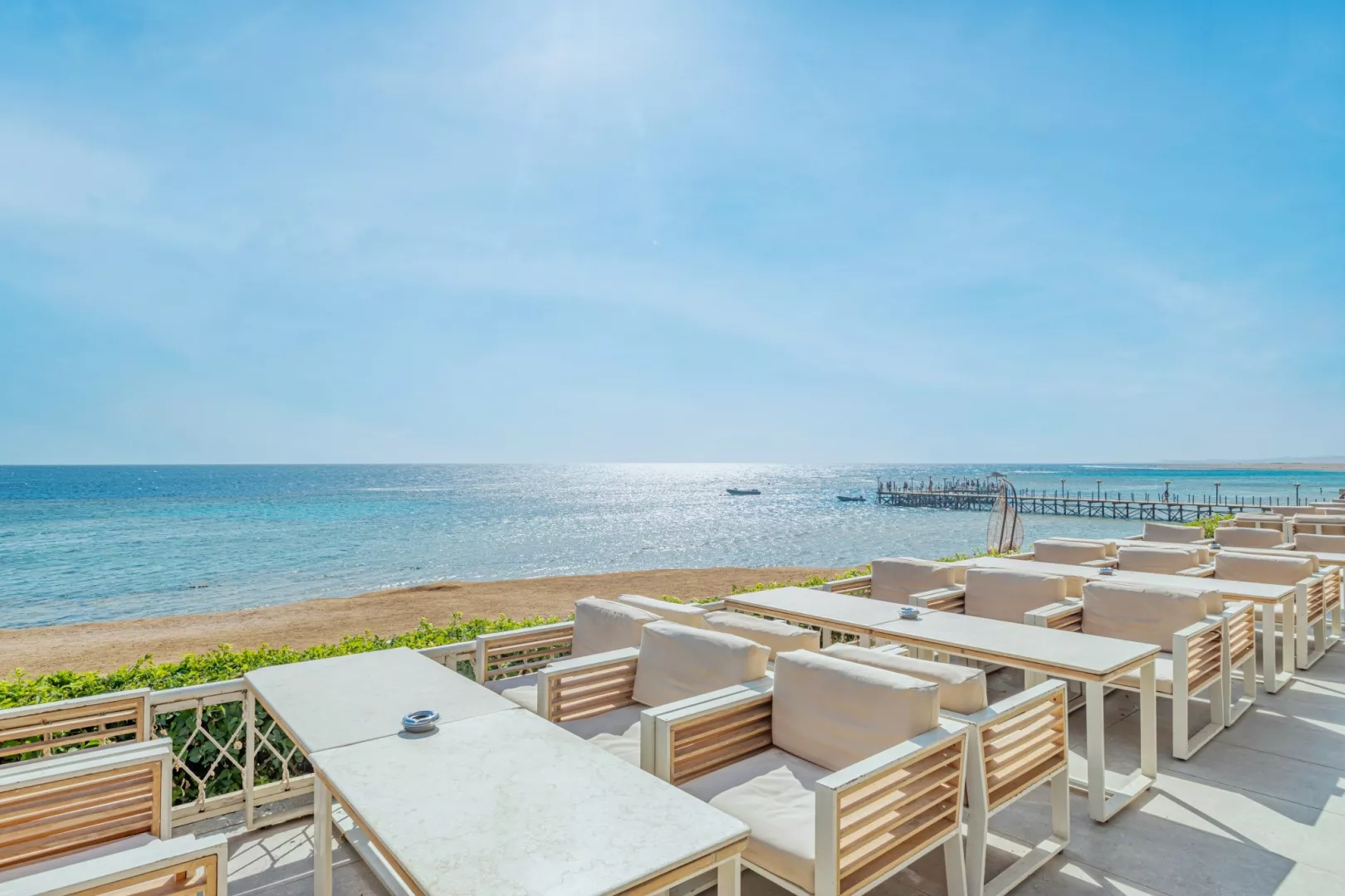 Piesočnatá pláž sa nachádza priamo pri hoteli, pričom pre vstup do mora je k dispozícii aj mólo. Lehátka, slnečníky a osušky sú k dispozícii zdarma.