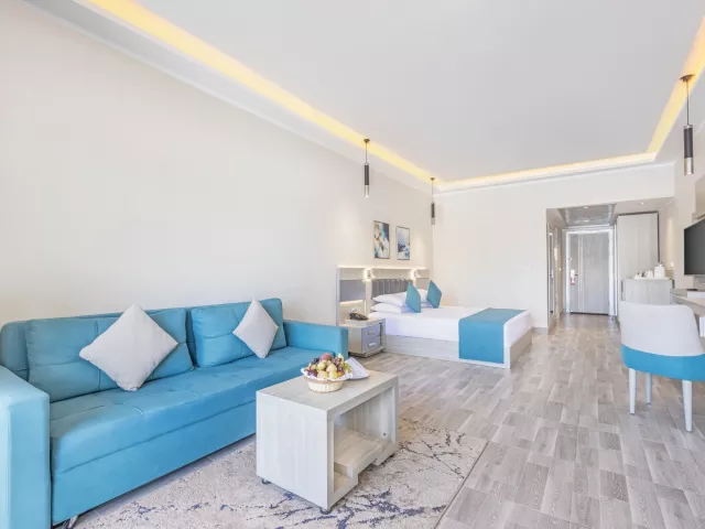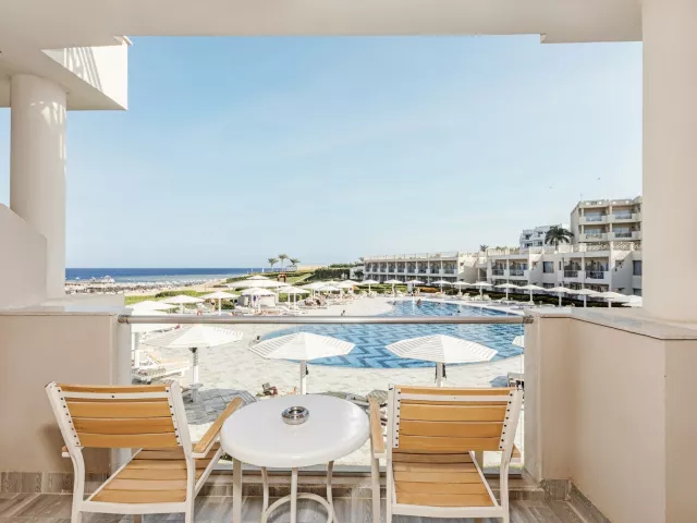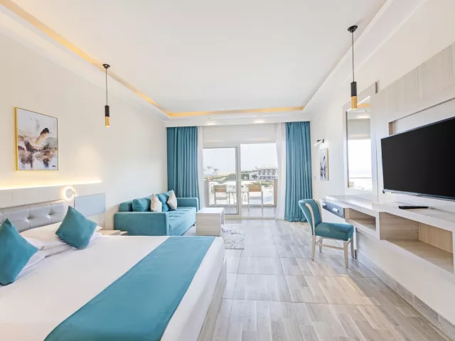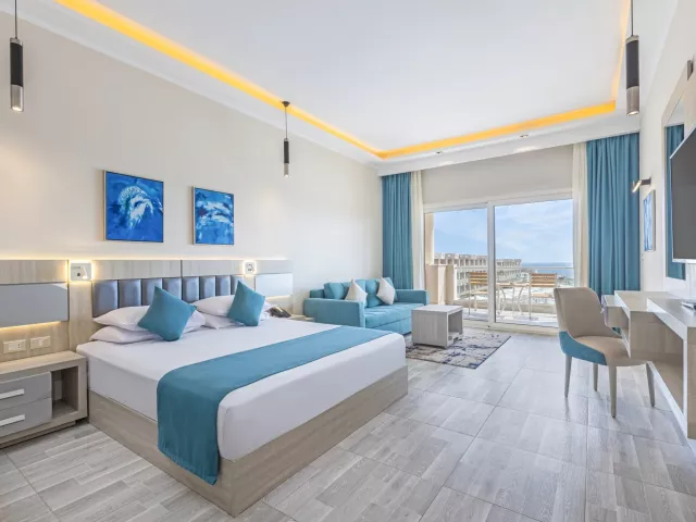 Dvojlôžková izba Premium s bočným výhľadom na more je vybavená individuálne ovládateľnou klimatizáciou, telefónom, TV so satelitným príjmom, Wi-Fi (zdarma), minibarom (nealko nápoje 1x za pobyt zadarmo), trezorom (zdarma), setom na prípravu kávy a čaju, kúpeľňou s WC (sušič vlasov) a balkónom alebo terasou. Ostatné typy izieb ponúkajú podobné vybavenie, pričom niektoré majú výhľad na more alebo sa nachádzajú najbližšie k pláži.