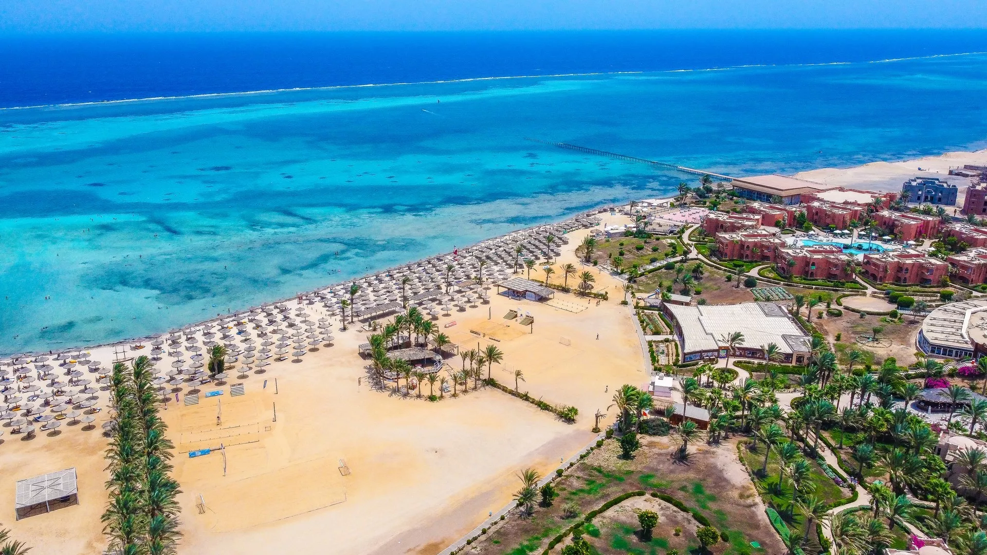 Dlhá piesočnatá pláž priamo pri rezorte ponúka kúpanie v prírodnej lagúne s piesočnatým vstupom, vhodným aj pre deti (miestami s koralovým podložím, odporúčame obuv do vody). Lehátka, slnečníky a osušky sú k dispozícii zdarma, pričom na pláži sa nachádza aj bar.