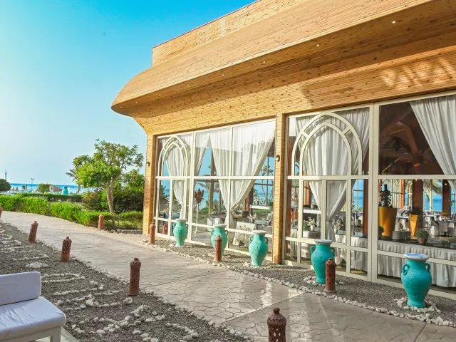 Hotel ponúka vstupnú halu s recepciou, hlavnú reštauráciu a reštauráciu à la carte (ryby) za poplatok s povinnou rezerváciou. K dispozícii sú aj lobby bar, bar pri bazéne, bar na pláži, nákupná pasáž, bazén (v zime vyhrievaný) so slnečníkmi a ležadlami zdarma, detský bazén, aquapark a miniklub.