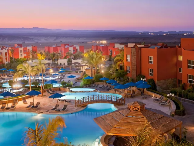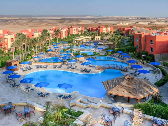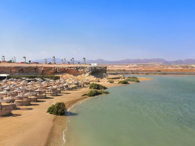 Hotel sa nachádza 45 km od letiska Marsa Alam, v zátoke Jabal Rosas Bay, v druhej línii od mora.
