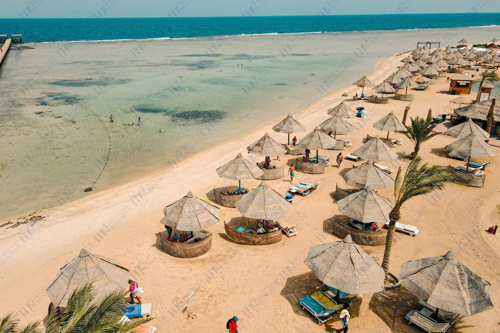 Piesočnatá pláž priamo pri hoteli ponúka korálové podloží a prístup do mora len z móla. K dispozícii sú lehátka, slnečníky a osušky zdarma. Na pláži sa nachádza bar v rámci all inclusive.