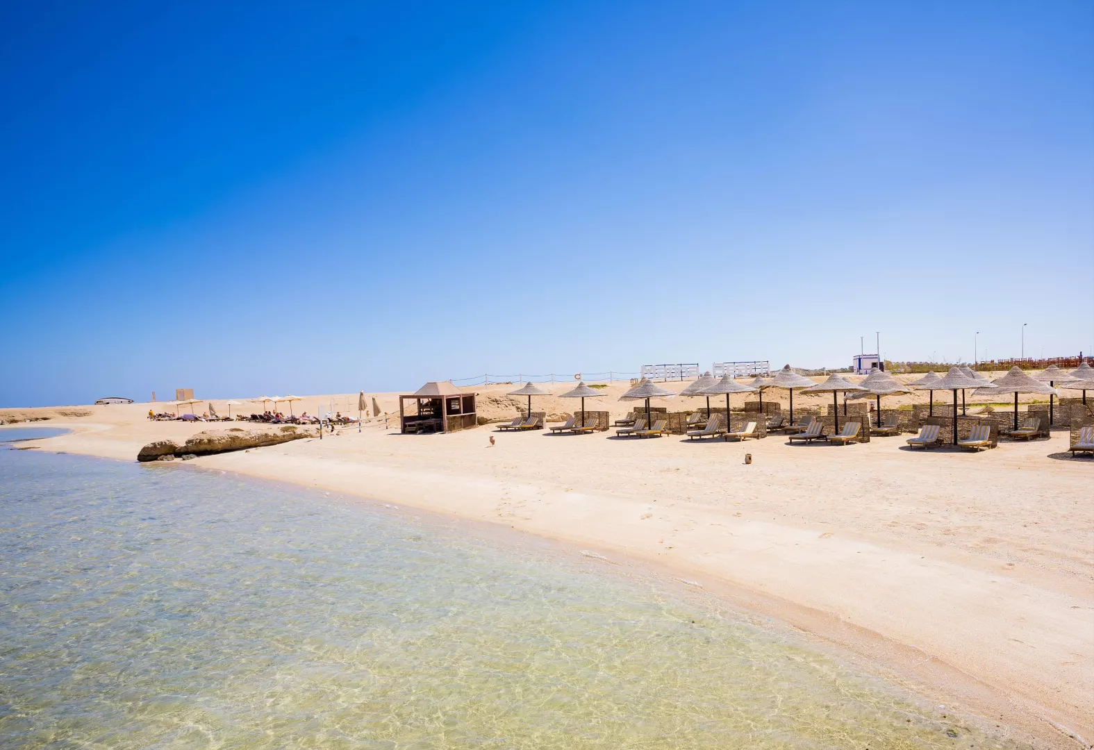 Piesočnatá pláž s koralovým podložím, kde je odporúčané nosiť obuv do vody. Na pláži sú k dispozícii ležadlá, slnečníky a osušky bez poplatku.