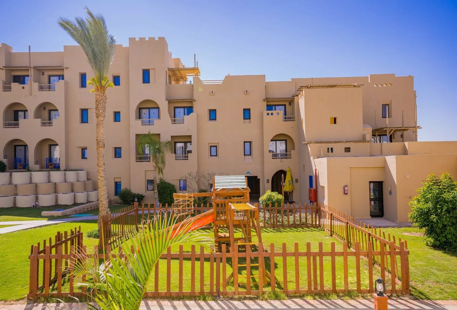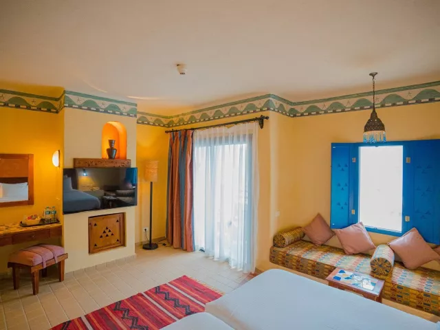 Hotel má skvelú polohu s prístupom k pobrežnej promenáde, ktorá ponúka rôzne možnosti zábavy. Izby sú zariadené v núbijskom štýle a hotel je vhodný pre všetky vekové kategórie. Pre najmenších je k dispozícii miniklub, detský bazén a šmykľavky.