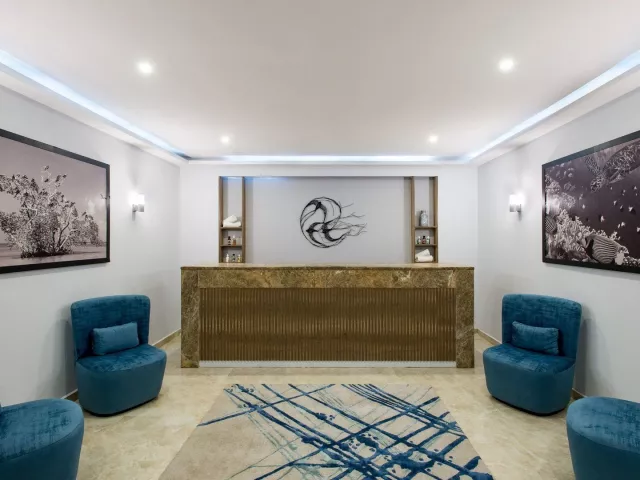Hotel ponúka recepciu, lobby, lobby bar, bary na pláži a vo wellness zóne, hlavnú reštauráciu a à la carte reštauráciu Olive. Pre rodiny a deti sú k dispozícii aquapark, posilňovňa, tenisový kurt, bowling, herňa a nákupná arkáda.