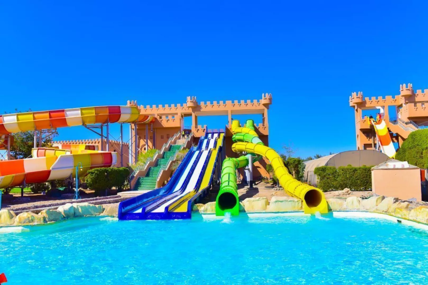 5 vonkajších bazénov (1 vyhrievaný bazén v zime aquapark (12 toboganov pre dospelých a 6 toboganov pre deti, v zime čiastočne vyhrievaný) hlavná reštaurácia Deň a noc à la carte reštaurácia Layaly (egyptská kuchyňa) ala carte reštaurácia Sunset (medzinárodná kuchyňa) lobby bar Blu bar s výhľadom na more rodinný bufet bar vo vodnom parku bar Šport bar na pláži disko bar Diamond
