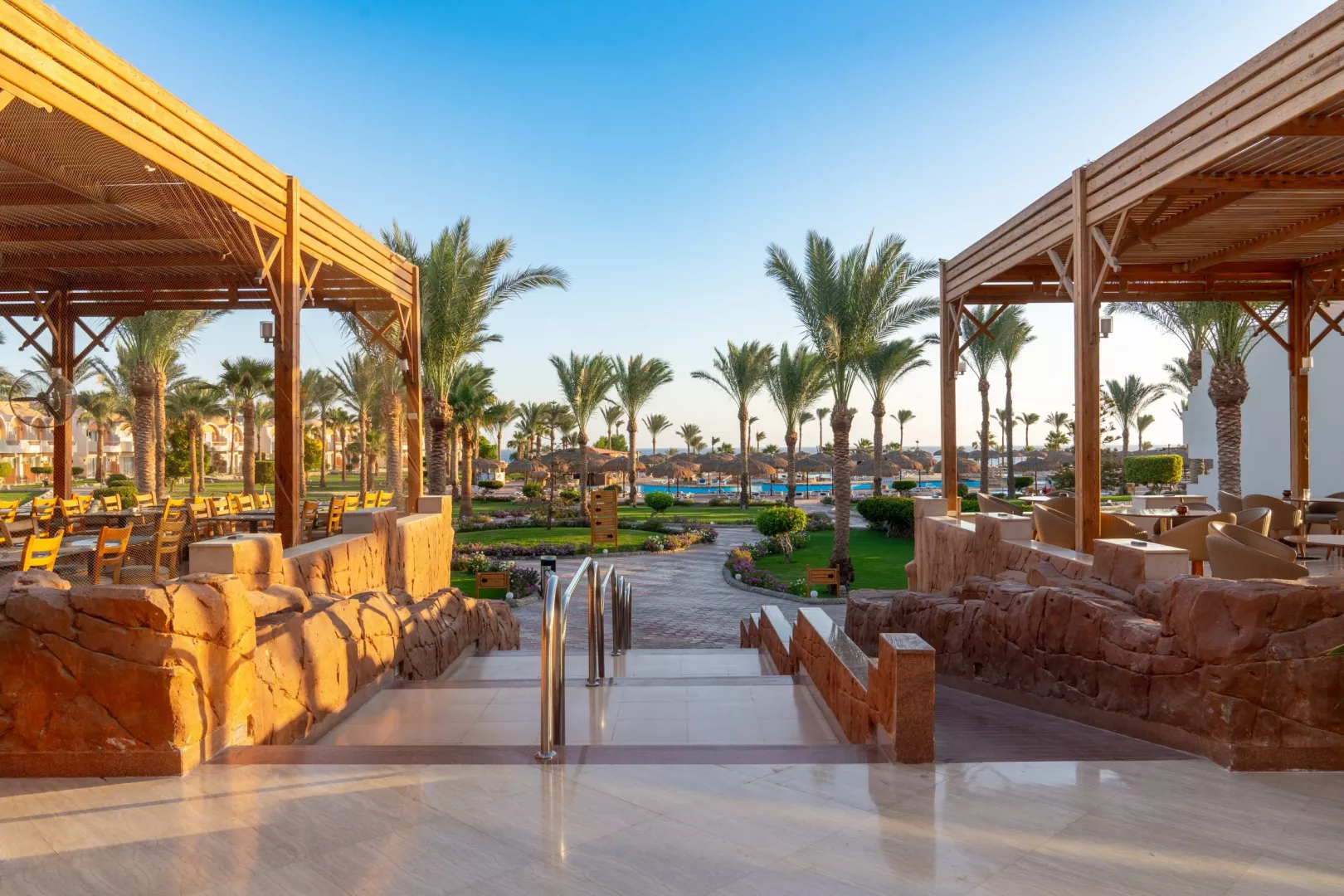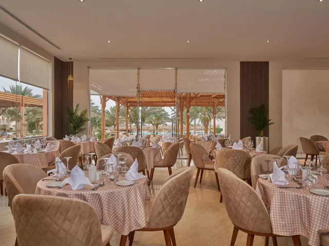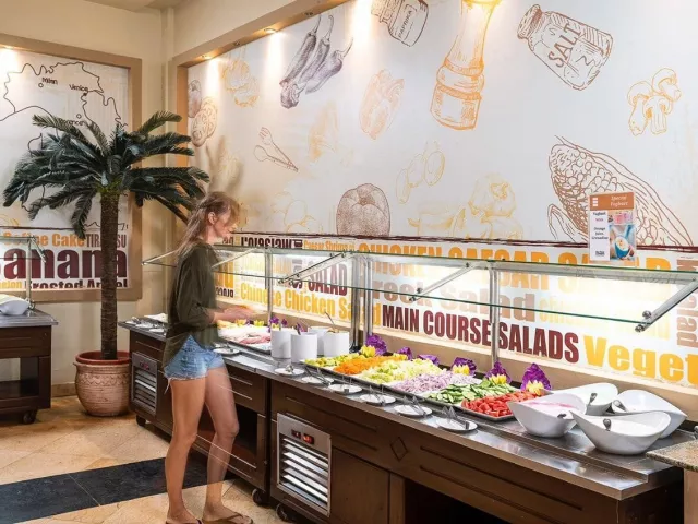 V hoteli sa nachádza niekoľko reštaurácií, ktoré ponúkajú široký výber medzinárodných a miestnych jedál. Stravovanie je zabezpečené formou bufetu, vrátane možností pre vegetariánov. V ponuke sú aj tematické večere s rôznymi kuchyňami.