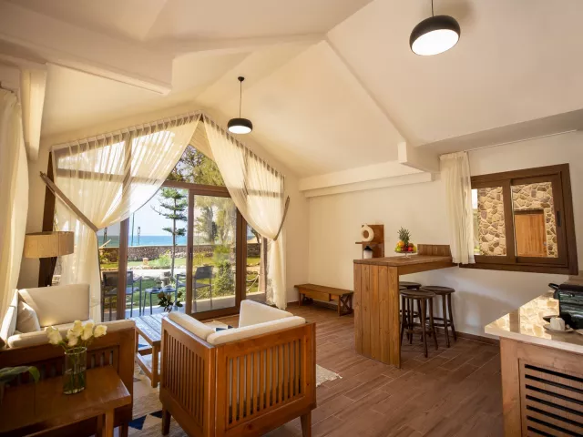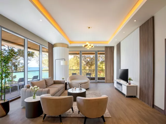 Hotel disponuje 326 izbami a suitami, vrátane 31 bungalowov. Každá izba je vybavená klimatizáciou, bezplatným Wi-Fi, kúpeľňou s WC, sušičom vlasov, trezorom zdarma, TV s medzinárodnými programami a minibarom (nealkoholické nápoje a voda dopĺňané denne zdarma). Všetky izby majú balkón alebo terasu. K dispozícii sú rôzne typy ubytovania, vrátane bungalovov pre dospelých, izieb s výhľadom na more a rodinných izieb.