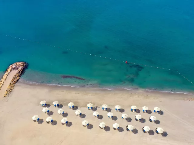 Súkromná piesočnatá pláž s pozvoľným vstupom do mora ponúka slnečníky a ležadlá zdarma, ako aj plážové osušky. Na pláži sa nachádza bar s bohatou ponukou nápojov. Vodné športy a potápanie sú dostupné za poplatok.