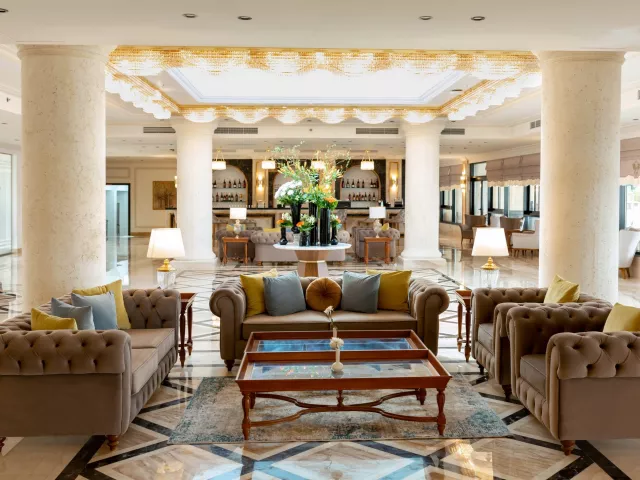 Hotel ponúka široké spektrum vybavenia a služieb vrátane recepcie s nepretržitou prevádzkou, bezplatného Wi-Fi v celom areáli, a la carte reštaurácií, wellness centra a spa, obchodu so suvenírmi a konferenčných miestností. K dispozícii sú aj vonkajšie a vnútorné bazény, detský bazén, športové ihriská, fitness centrum, a rôzne animácie počas dňa a večera.