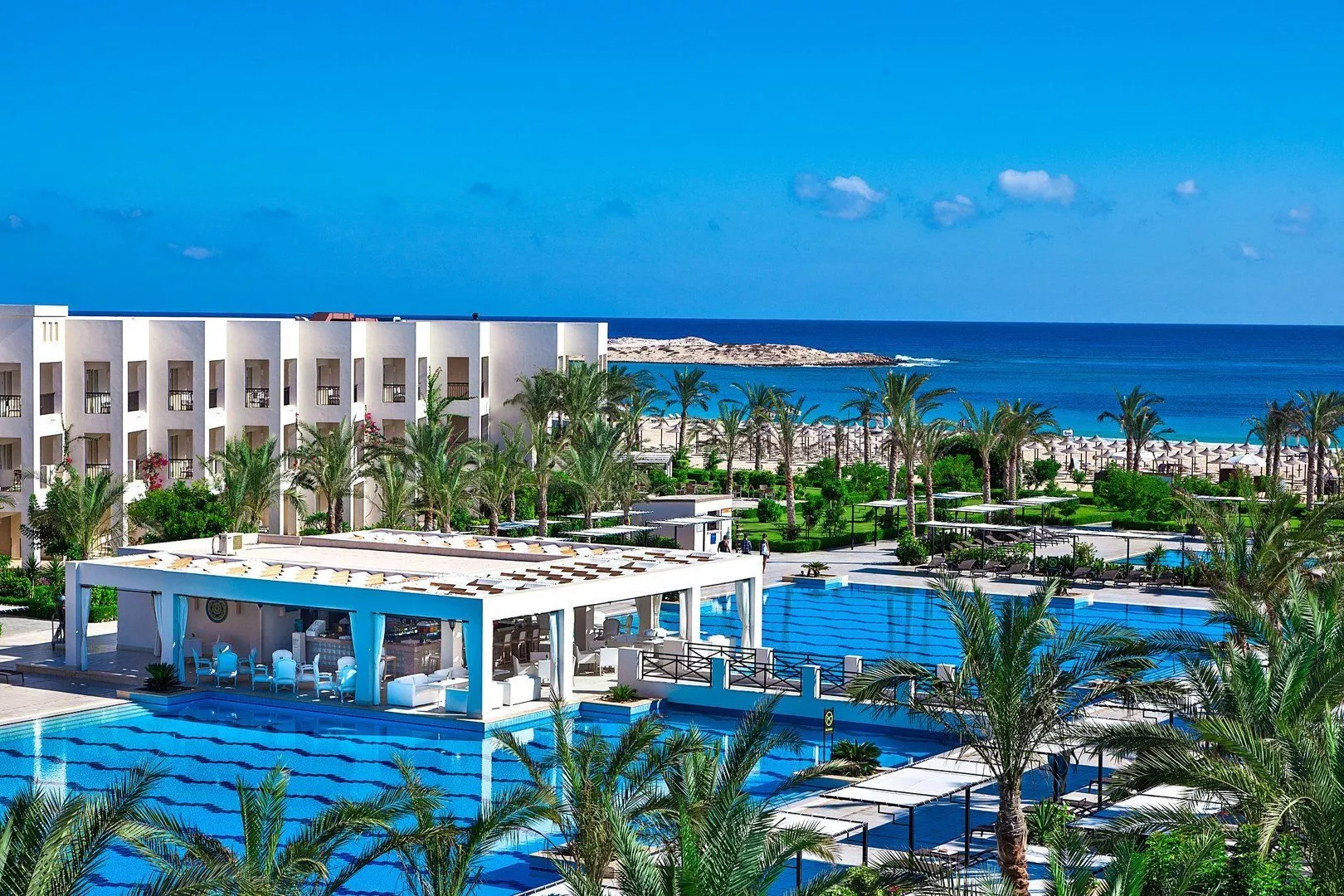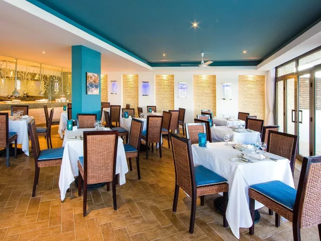 Súkromná pláž s bielym pieskom poskytuje skvelé podmienky na opaľovanie a vodné aktivity. K dispozícii sú lehátka, slnečníky a osušky bez poplatku, ako aj bar na pláži s nápojmi v rámci all inclusive.