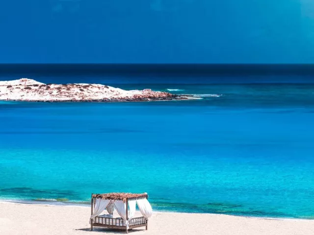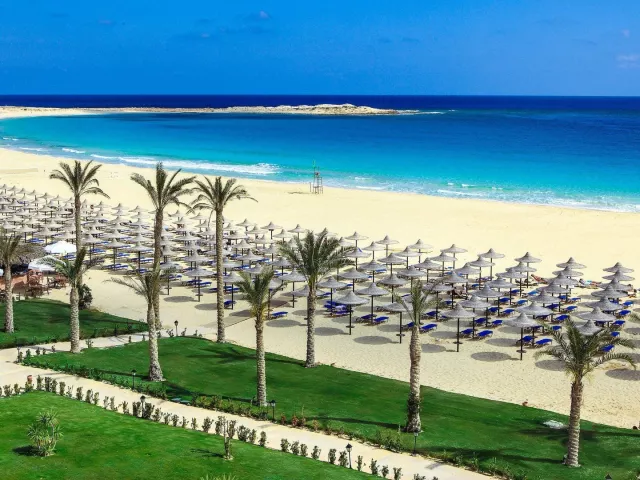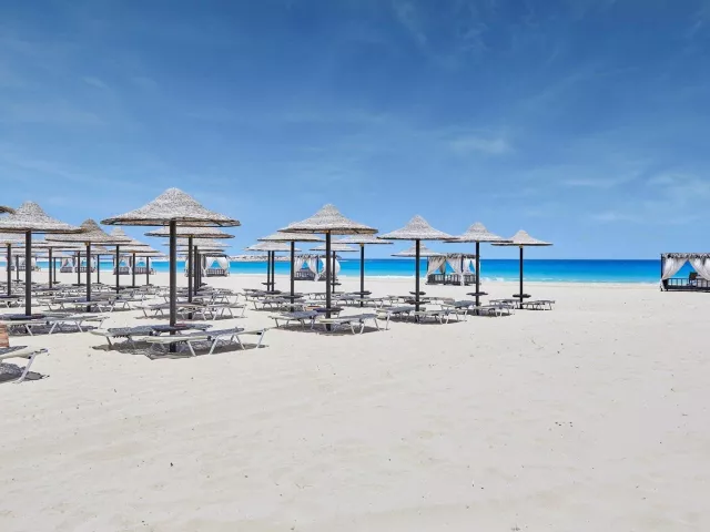 Marsa Matrouh - Almaza Bay, známy svojou nádhernou plážou s bielym pieskom a pozvoľným vstupom do mora, je ideálnym miestom pre relaxáciu a oddych.