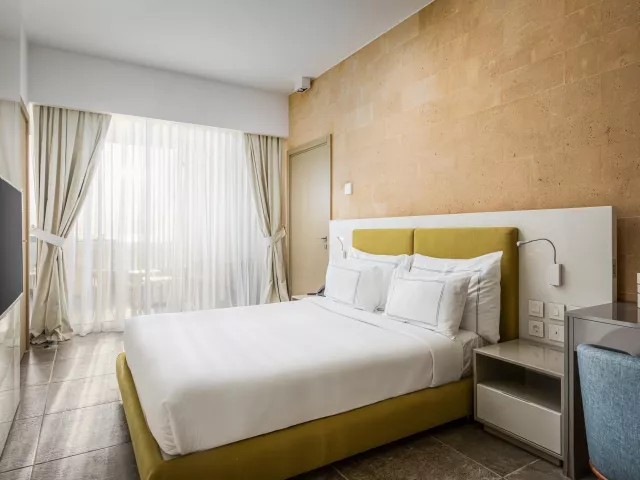 Hotel ponúka dvojlôžkovú izbu s klimatizáciou, telefónom, satelitnou TV, bezplatným Wi-Fi, minibarm (s bezplatným doplňovaním vody), setom na prípravu kávy a čaju, kúpeľňou s WC (sušič vlasov), trezorom a balkónom alebo terasou, ktorá sa nachádza pri umelej lagúne so slanou vodou.