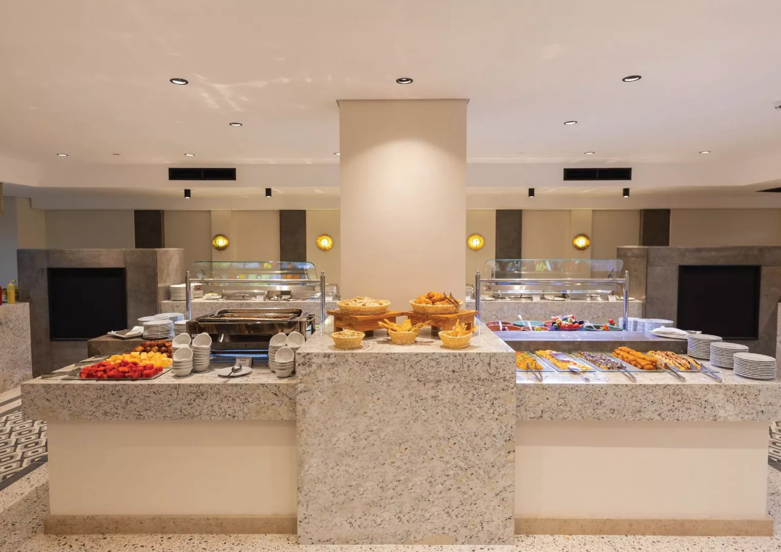 V rámci all inclusive je podávané raňajky, ľahký obed a večera formou bufetu. Počas dňa sú k dispozícii ľahké snacky, káva, čaj a sladké pečivo. Vybrané alkoholické a nealkoholické nápoje miestnej výroby sú dostupné od 10:30 do 23:00.
