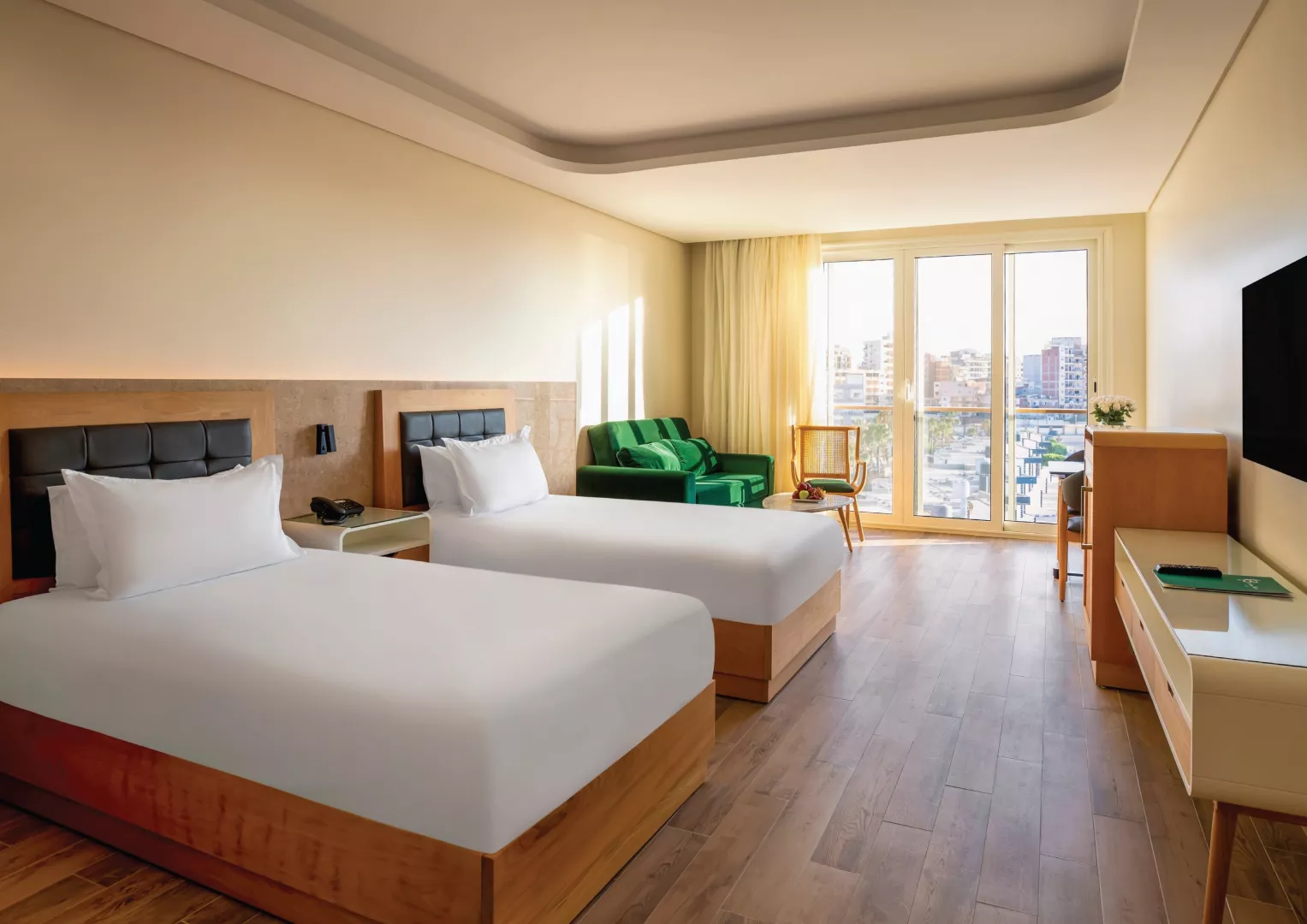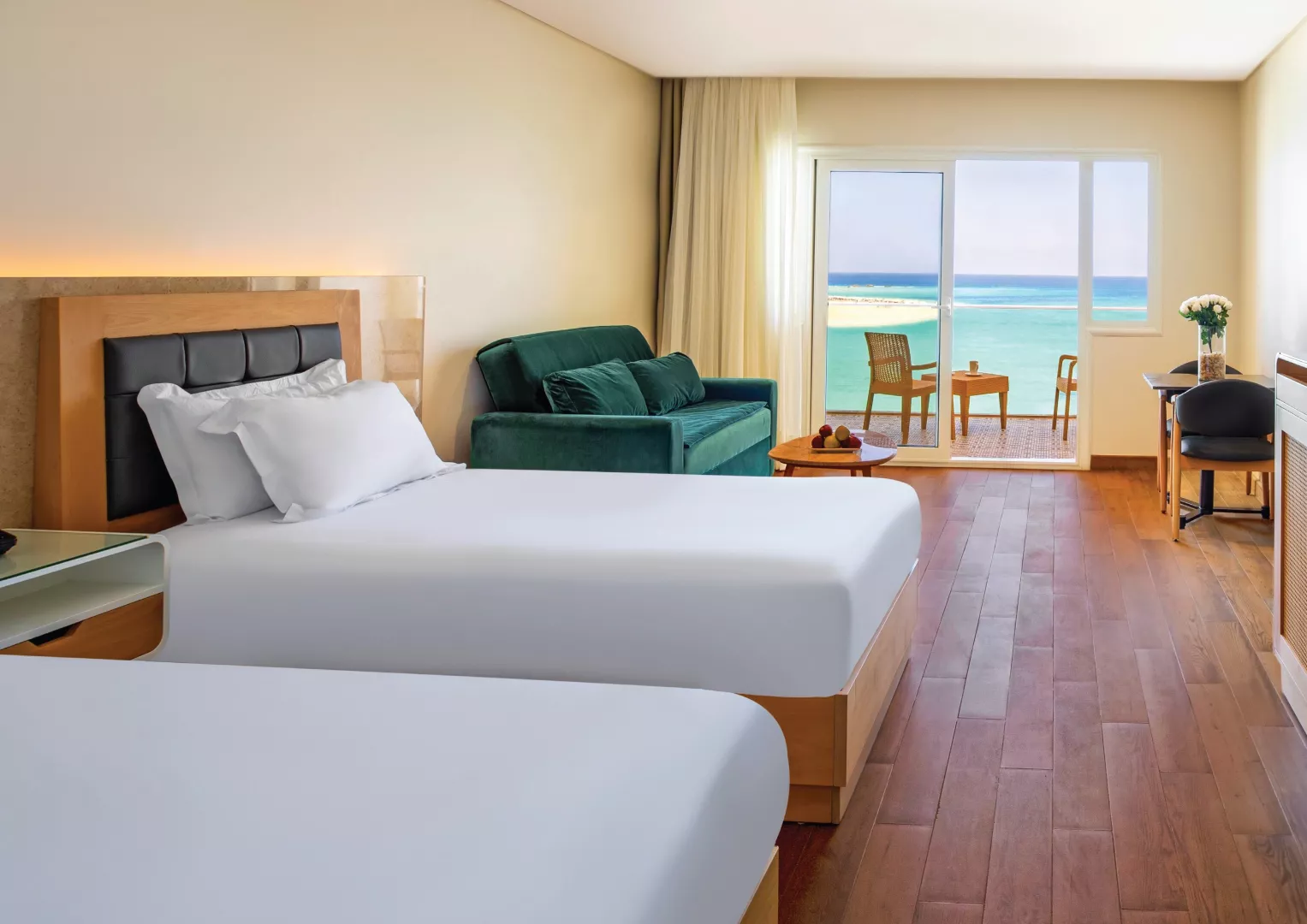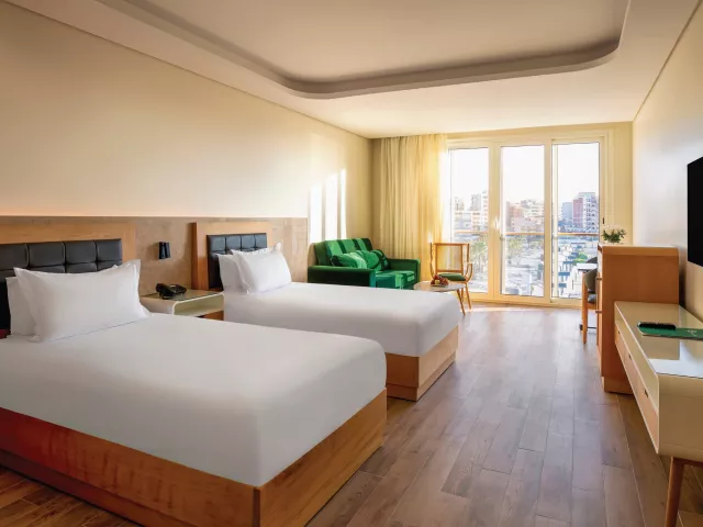 Dvojlôžkové izby sú vybavené klimatizáciou, telefónom, TV so satelitným príjmom, Wi-Fi (zdarma), minibarom s doplňovanou vodou, setom na prípravu kávy a čaju, kúpeľňou/WC so sušičom vlasov, trezorom a balkónom alebo terasou. K dispozícii sú aj jednolôžkové izby a izby s výhľadom na more.