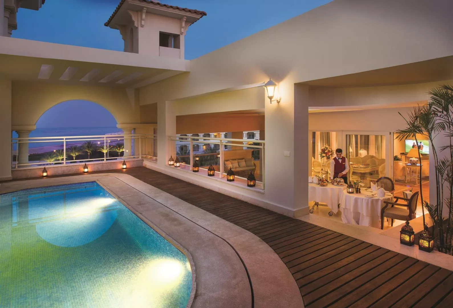 hotel disponuje 647 izbami vrátane dvojlôžkových izieb Deluxe, rodinných suít a swim up suit, pričom izby sú vybavené moderným nábytkom, LCD TV, minibarom, klimatizáciou a balkónom alebo terasou. Rôzne typy izieb ponúkajú aj výhľad na more a ďalšie exkluzívne služby.