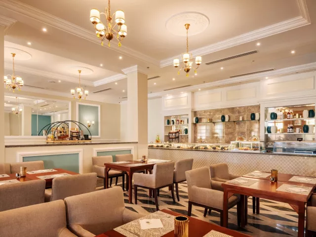Vstupná hala s recepciou, hlavná reštaurácia, reštaurácia á la carte (turecká, ázijská, talianska, steak, orientálna) - zdarma, rezervácia nutná, plážový bar, lobby bar, bar pri bazéne, bazén (s možnosťou vyhrievania v zimnom období), lehátka, slnečníky a osušky zdarma, miniklub.