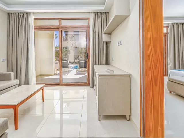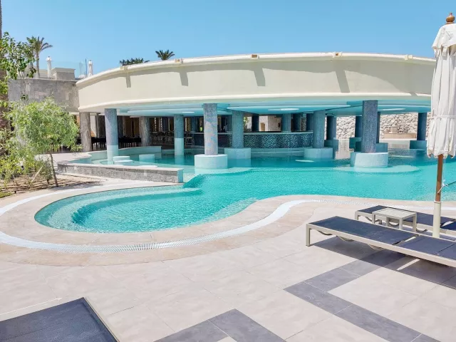 Junior Suita, Výhľad záhrada: klimatizácia, TV so satelitným príjmom, minibar (zdarma), set na prípravu kávy a čaju, kúpeľňa/WC (sušič vlasov), trezor (zdarma), telefón, balkón alebo terasa, jedna miestnosť s obývacou časťou. Ostatné typy izieb (pokiaľ nie je uvedené inak, majú izby vyššie uvedené vybavenie) Junior Suita, Výhľad mora: výhľad na more. Junior Suita, Swim-up: priamy vstup do zdieľaného bazéna (v zimnom období s možnosťou vyhrievania). Master Suita, Výhľad záhrada: priestrannejšie, spálňa a obývacia izba oddelené stenou s priechodom bez dverí. Master Suita, Swim-up: priestrannejšie, spálne a obývacia izba oddelené stenou s priechodom bez dverí, priamy vstup do zdieľaného bazéna (v zimnom období s možnosťou vyhrievania). Junior Suita, Superior, Výhľad mora: ubytovanie situované bližšie k pláži, výhľad na more. Junior Suita, Superior, Výhľad mora, Swim-up: ubytovanie situované bližšie k pláži, výhľad na more, priamy vstup do zdieľaného bazéna (v zimnom období s možnosťou vyhrievania). Suita Dome, Výhľad záhrada: strešná súkromná vilka situovaná na poslednom poschodí hotela, priestranná terasa s vírivkou a vonkajším posedením s lehátkami. Suita Dome, Výhľad mora: strešná súkromná vilka situovaná na poslednom poschodí hotela, priestranná terasa s vírivkou a vonkajším posedením s lehátkami, výhľad na more. Vila, Privátny bazén: priestranná vila situovaná v záhrade, dve spálne oddelené dverami od obývacej časti, dve kúpeľne, priamy vstup z priestrannej terasy s lehátkami do zdieľaného bazéna (v zimnom období s možnosťou vyhrievania).