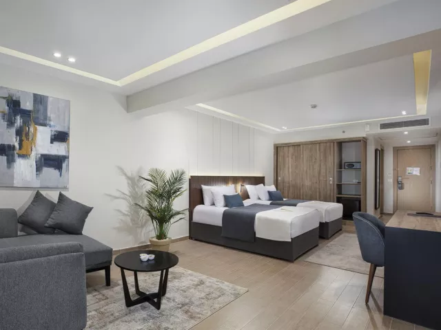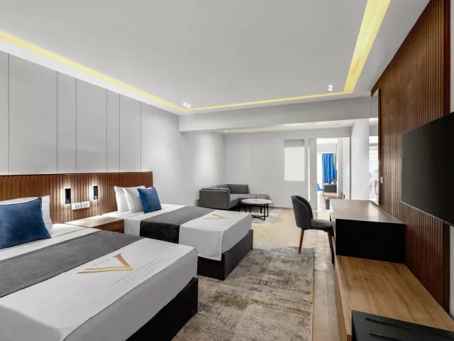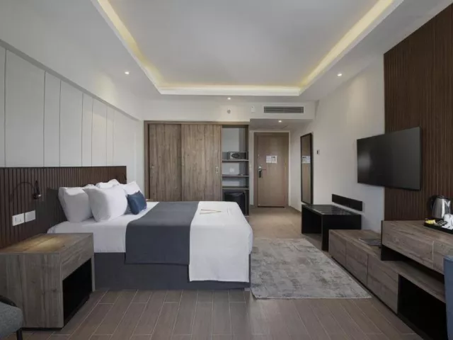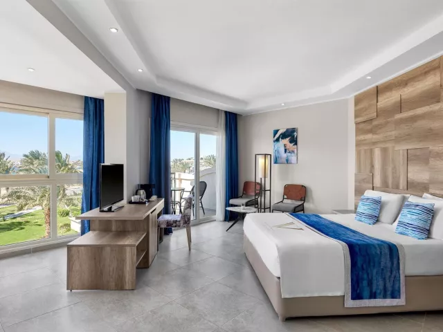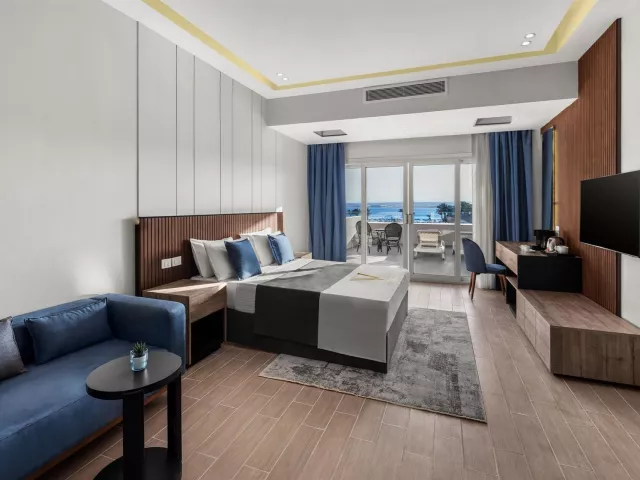 Hotel ponúka rôzne typy izieb, ako sú Deluxe a Superior izby s výhľadom do záhrady alebo na more. Izby sú vybavené klimatizáciou, Wi-Fi, TV so satelitným príjmom, minibarom a trezorom. Rodinné suity majú priestrannejšie usporiadanie a niektoré aj balkóny.