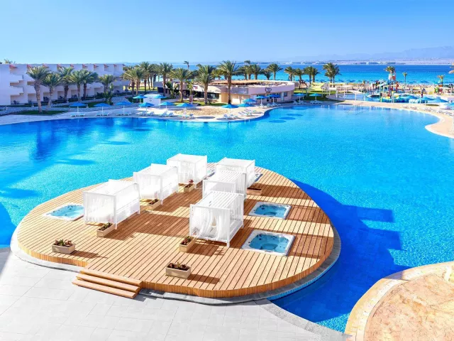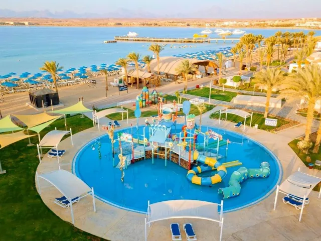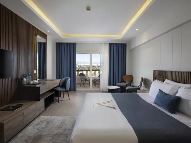 The V Luxury Resort sa nachádza v pokojnej oblasti Sahl Hasheesh, priamo pri jednej z najkrajších piesočnatých pláží v Hurghade. Letisko Hurghada je vzdialené približne 18 km a centrum mesta 26 km. Blízko sa nachádzajú aj nákupné možnosti, reštaurácie a bary.