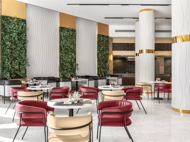 Rezort zahŕňa modernú vstupnú halu s recepciou, hlavnú reštauráciu a viacero á la carte reštaurácií vrátane talianskej, mexickej, mongolskej a gril reštaurácie (rezervácia nutná). K dispozícii sú aj bary, komplex bazénov a víriviek, aquapark so šmykľavkami.
