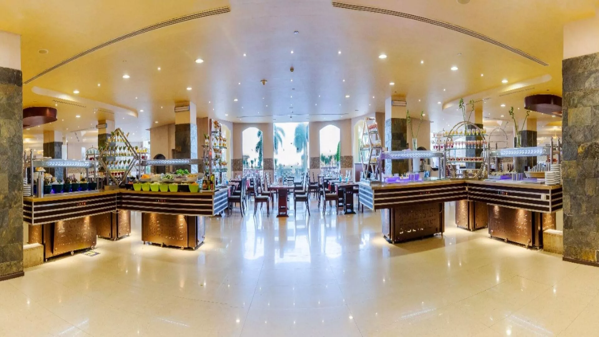 All inclusive stravovanie zahŕňa raňajky, obedy a večere formou bufetu, ako aj občerstvenie počas dňa. Neobmedzené množstvo miestnych alkoholických a nealkoholických nápojov je k dispozícii 24 hodín denne. V rámci all inclusive je možné využiť aj večeru v jednej z à la carte reštaurácií (1x za pobyt zdarma, s rezerváciou).