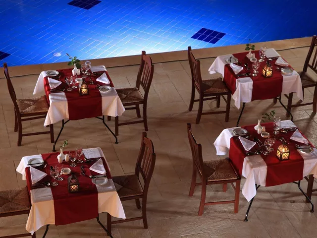 Hotel disponuje hlavnou reštauráciou s medzinárodnou kuchyňou formou bufetu. K dispozícii je aj snack bar a niekoľko barov pri bazéne, kde si návštevníci môžu vychutnať ľahké občerstvenie a nápoje.