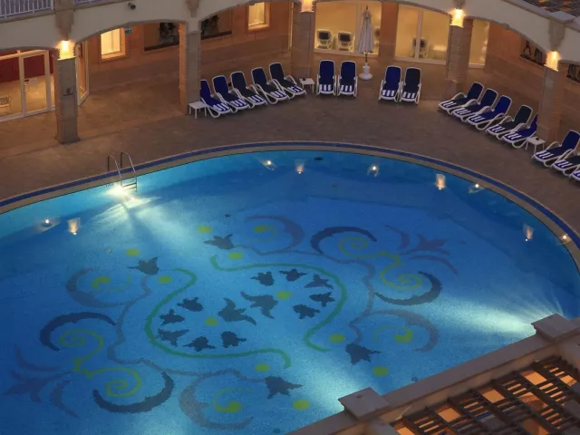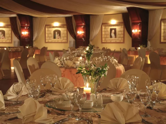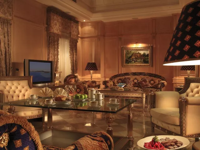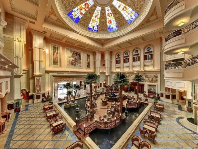 Resort sa skladá z hlavnej 5-poschodovej budovy a dvoch 3-poschodových budov. V hoteli sa nachádza recepcia, lobby bar, 4 reštaurácie à la carte (grécka, talianska, ázijská a orientálna), bufetová reštaurácia, ako aj 5 barov. K dispozícii sú tiež konferenčné miestnosti, kaderníctvo a obchodná arkáda. Vonku sa rozprestiera veľký vonkajší bazén, detský bazén a bar pri bazéne. Ponuka zahŕňa aj vnútorný vyhrievaný bazén. Fitnes, sauna, parná miestnosť a animačné programy sú v ponuke bez poplatku.