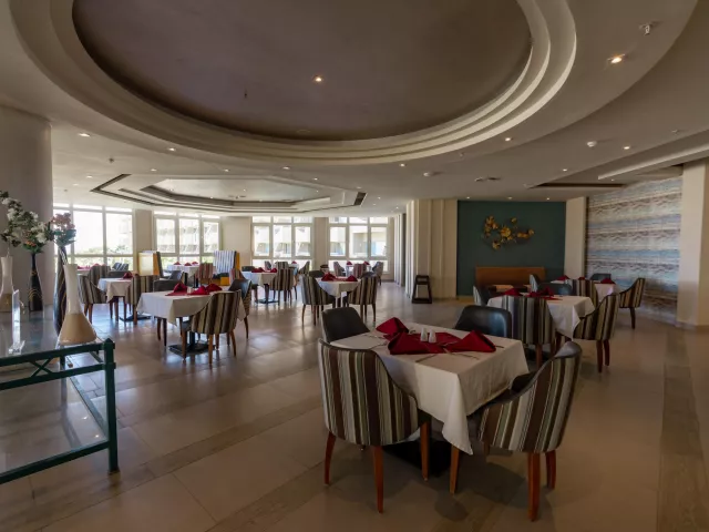 Hotel ponúka koncept all inclusive s bohatým bufetom na raňajky, obedy a večere. Ranná káva, čaj, pivo, víno a miestne nápoje sú k dispozícii počas celého dňa. Raz za pobyt si môžete vychutnať večeru v jednej z á la carte reštaurácií (rezervácia nutná).