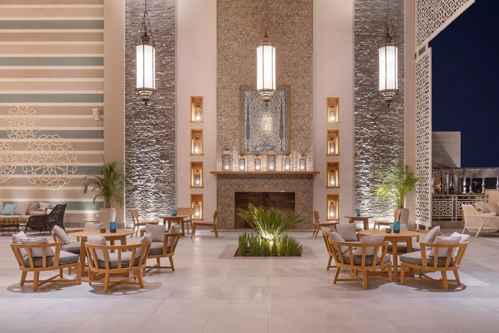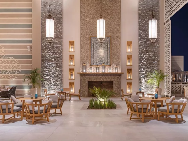 Hotel disponuje modernou vstupnou halou s recepciou, hlavnou reštauráciou a niekoľkými tematickými reštauráciami, vrátane špecializovaných reštaurácií zameraných na rôzne kuchyne. Ďalej sú k dispozícii bary, 2 bazény (v zimnom období vyhrievané) a detský bazén so samostatným ihriskom a mini klubom. Wi-Fi je dostupné zdarma v celom areáli hotela.