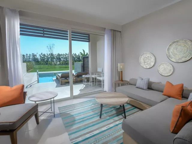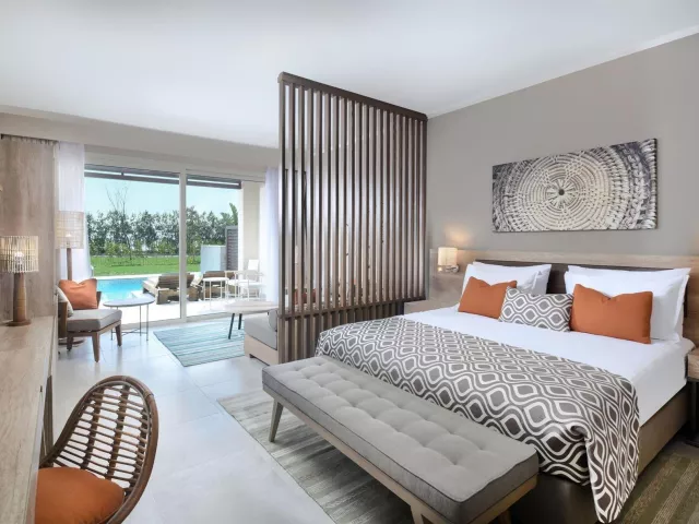 Izby sú priestranné a moderné, vybavené klimatizáciou, televízorom so satelitným príjmom, minibarom (doplňovaný denne), trezorom a setom na prípravu kávy a čaju. K dispozícii sú rôzne typy izieb, vrátane Dvojlôžkové izby Superior s bočným výhľadom na more, Grand Superior izieb s výhľadom na bazén a rodinnej Deluxe izby s dvoma oddelenými izbami.