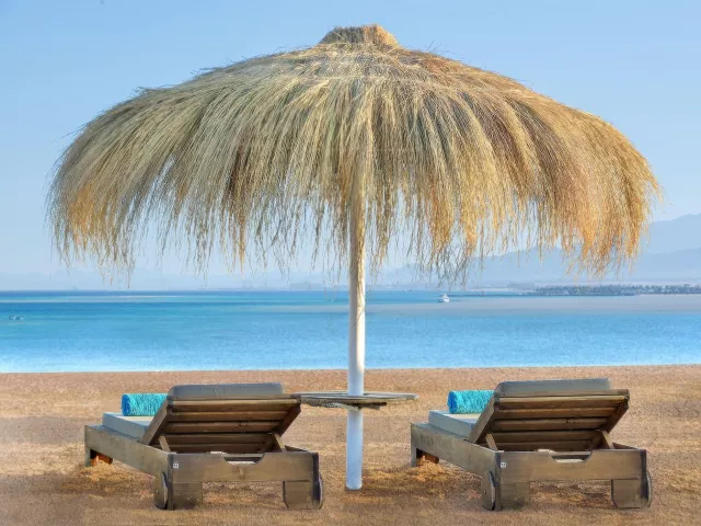 Čistá široká piesočná pláž sa nachádza priamo pri hoteli, s bezplatným prístupom k lehátkam, slnečníkom a plážovým osuškám. V blízkosti sú aj koraly, ideálne na šnorchlovanie.