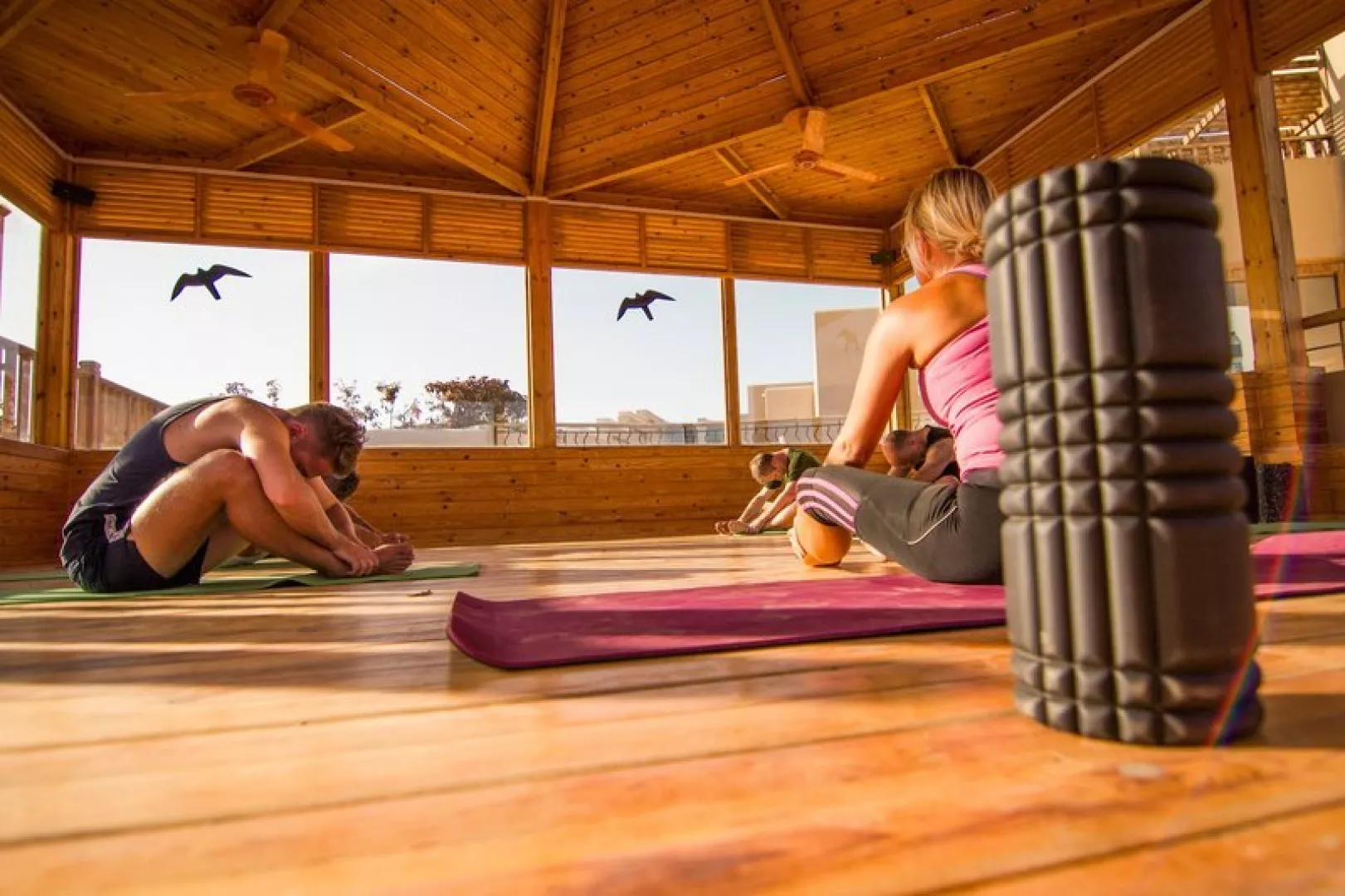 Ponuka športových aktivít zahŕňa panoramatickú saunu s výhľadom na more, plážový volejbal, posilňovňu, futbal, tematické večery a príležitostne živú hudbu.
