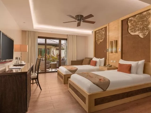 Izba Deluxe - Dvojlôžková izba s rozlohou približne 36 m² a s manželskou posteľou alebo 2 oddelenými lôžkami. Izba je vybavená TV, písacím stolom, trezorom, balkónom, príslušenstvom na prípravu čaju a kávy, rýchlovarnou kanvicou, žehličkou, čističkou vzduchu, bidetom a fénom. Izby Garden sú navyše vybavené chladničkou (obsah môže byť za poplatok) a kávovarom Nespresso.
