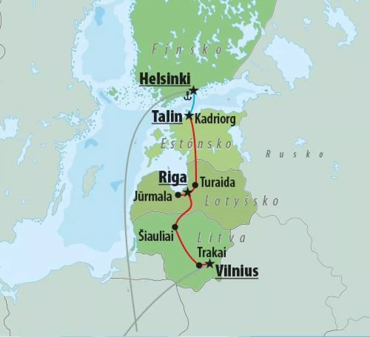 Medzi pamätihodnosti, ktoré navštívite, patrí Helsinki, Kadriorg, Tallinn, Turaida, Jürmala, Riga, Trakai, Šiauliai a Vilnius.
