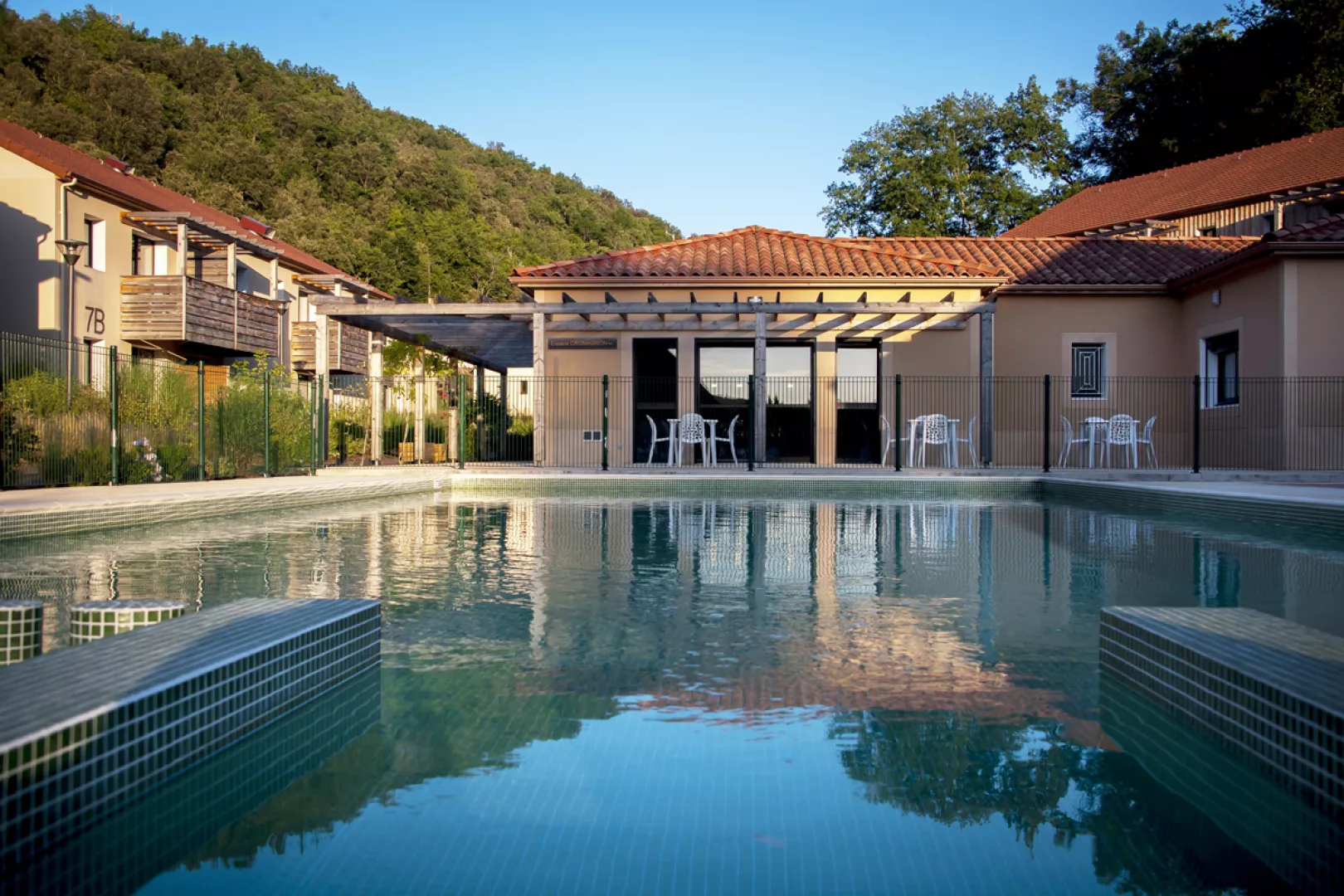 vonkajší bazén (otvorený od mája do polovice septembra v závislosti od počasia), pétanque, detské ihrisko, posilňovňa