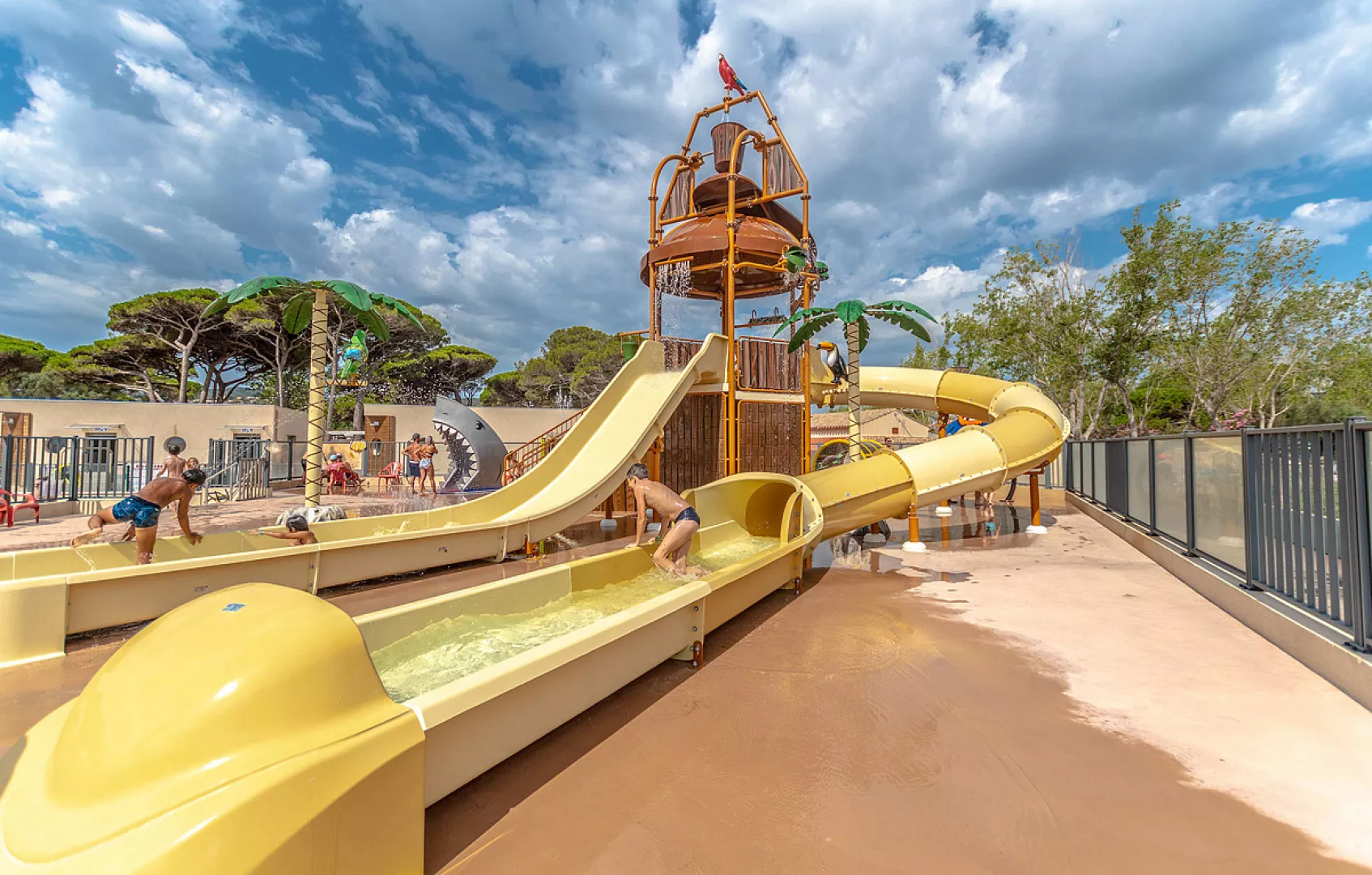 Kompletne vybavený prázdninový komplex v príjemnom prostredí borovicového hája, v priamej dostupnosti piesočnatých pláží a lagún a letoviska Saint Aygulf s obchodmi a reštauráciami.
