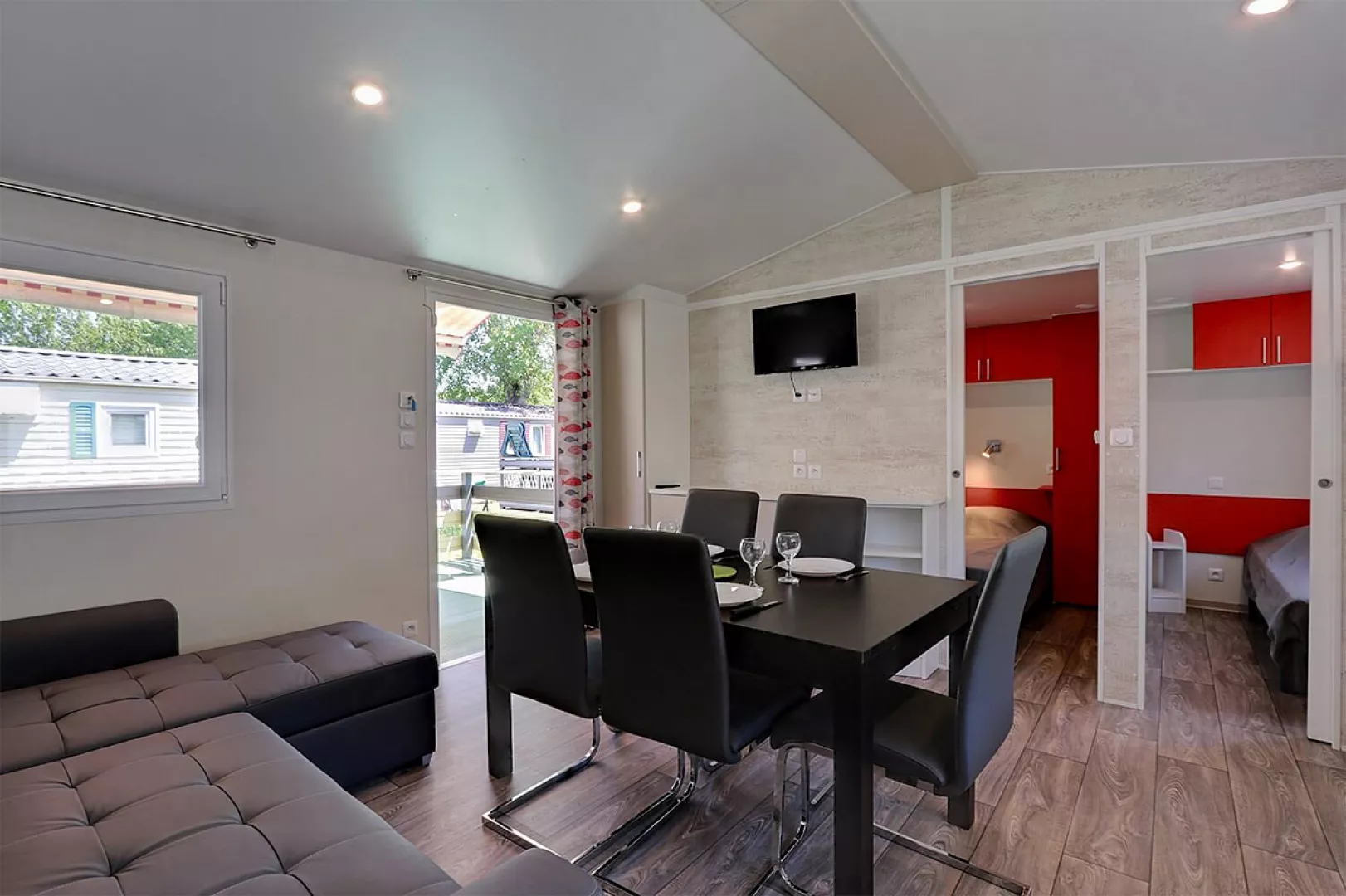 klimatizácia, TV, mikrovlnná rúra, umývačka riadu (pre mobilhome 5 Comfort), kávovar