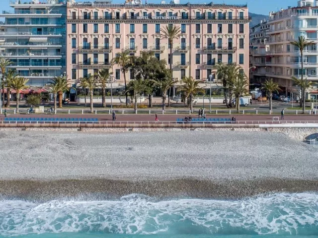 Hotel sa nachádza priamo v centre Nice na známej Promenade des Anglais, len približne 40 m od pláže, čo z neho robí ideálne miesto na strávenie relaxačnej dovolenky.