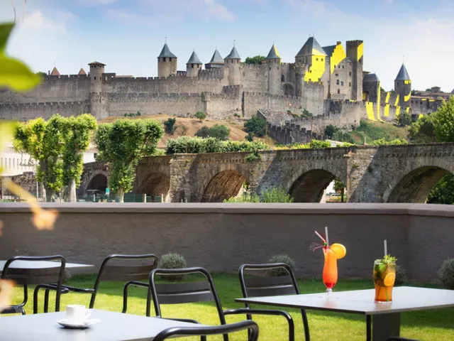 Carcassonne, Pont Vieux – 50 m, hrad Carcassonne – 850 m