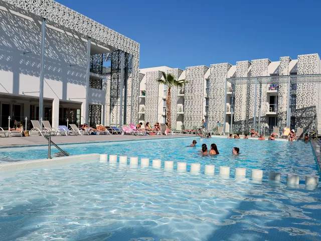 vonkajší bazén 24 x 8 m s detským bazénom a s ležadlami, menšia posilňovňa, sauna*, para* * služby za príplatok