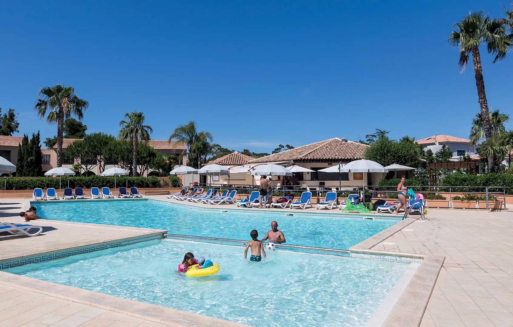 komplex dvoj až trojposchodových budov sústredených okolo vonkajšieho bazéna
