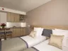 Pokoje typu studia mají obývací pokoj, plně vybavenou kuchyň (mikrovlnná trouba, lednice, sklokeramická varná deska, myčka nádobí), vlastní koupelnu (WC, sprcha, fén), trezor, pracovnu a kabelovou a satelitní TV. (možnost přidání jedné přistýlky).