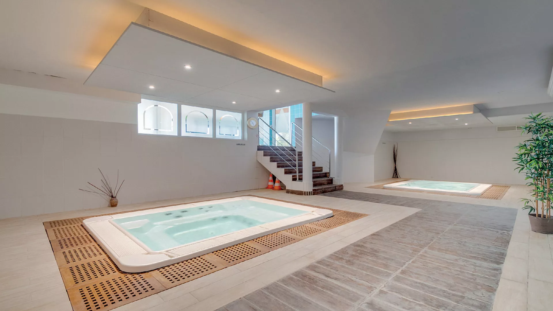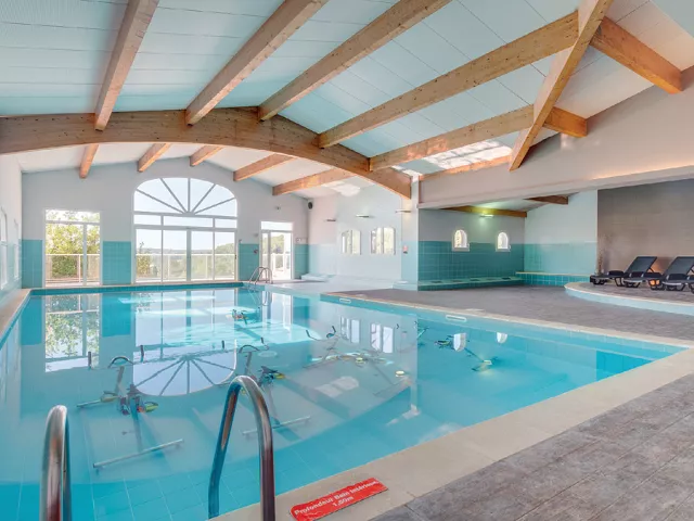 vonkajšie bazény 24 x 12 m a 20 x 10 m s vírivkou a detský vonkajší bazénik (v prevádzke od mája do septembra), ležadlá, vnútorný bazén, dráha na petangue, ping pong, fitness
